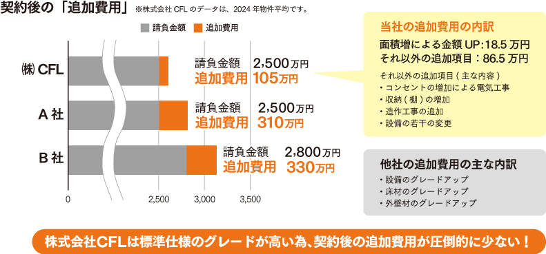 ㈱CFLは標準仕様のグレードが高い為、契約後の追加費用が圧倒的に少ない!